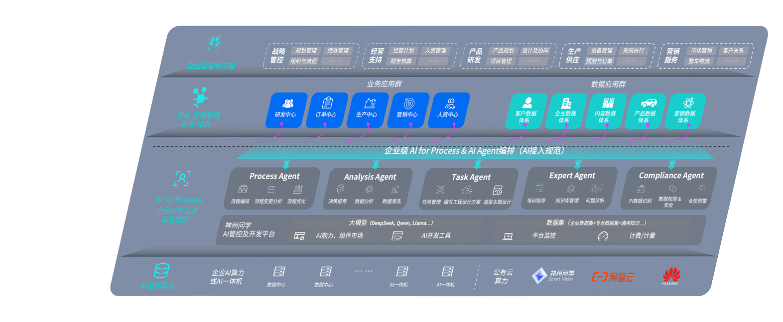 旺财28问学智车解决方案是一套基于AI技术的汽车行业智能化系统,,覆盖从底层算力到顶层AI应用的全栈方案。。。方案由算力层、、、、模型层和应用层组成:算力层,,方案支持多种一体机配置,,,具备云端灵活部署、、、多云适配以及动态优化计算资源的能力;模型层,,,旺财28问学平台版提供了企业级AI应用一站式构建与管理平台,,支持基于后训练强化技术的汽车企业专属模型的训练、、、、评测和运营;应用层,,,旺财28问学DeepSeek版提供包括超级员工、、、智能招采、、、、智能营销、、智能客服、、、、AI for BI等一系列解决方案,,可助力汽车行业实现数字化转型,,,,让管理更智能、、、响应更敏捷。。